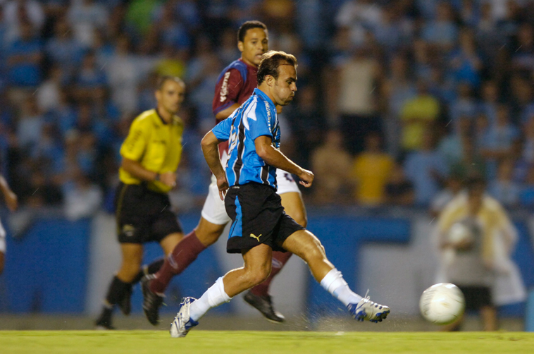 A torcida gremista já se mostrava impaciente com o rendimento do time, quando Hidalgo quase abriu o placar aos 43 minutos. Roger cruzou da esquerda. Perea ganhou no alto e escorou para o meio, onde estava o peruano. Ele enfiou a cabeça na bola, que bateu no poste esquerdo de Juninho.