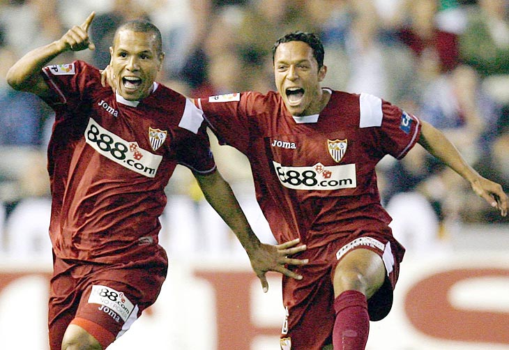 O Sevilla arrancou uma importante vitória neste sábado ao vencer o Valencia por 2 a 1, fora de casa, pela 28ª rodada do Campeonato Espanhol. O destaque ficou por conta do brasileiro Luís Fabiano, que confirmou sua boa fase ao assinalar os dois gols do Sevilla aos 10 e 21 minutos do primeiro tempo. O gol de honra do Valencia foi aos 44 da etapa final, com outro artilheiro verde-amarelo, o ex-corintiano Edu.