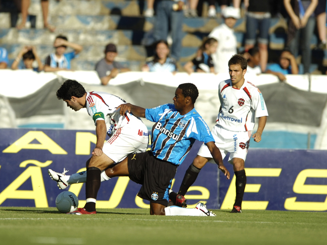 Em partida muito movimentada, o Grêmio domina o Sapucaiense e faz 2 a 0, com um gol de Perea. Na intermediária, Julio dos Santos fez belo passe para Reinaldo, que tentou o drible sobre a zaga do time de Sapucaia do Sul. A bola acabou nos pés de Perea, na entrada da área, e o colombiano só teve o trabalho de deslocar o goleiro Eliandro.