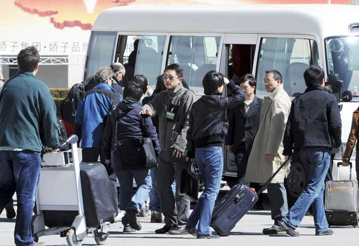 Os primeiros jornalistas a entrar no Tibete desde o início dos conflitos na região chegaram à capital Lhasa nesta quarta-feira. Para mostrar que a situação está normal na província, representantes do governo da China circularam de ônibus com os 26 correspondentes internacionais por áreas da cidade, em um tour que foi considerado bastante restrito pelos profissionais de imprensa.