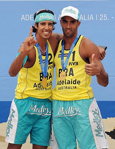 Pedro Solberg e Harley (Medley) conquistaram neste domingo o título do Aberto da Austrália, primeira etapa do Circuito Mundial de Vôlei de Praia, disputada em Adelaide. Com uma vitória sobre Wu-Xu, da China, em dois sets (23/21 e 21/12), a dupla subiu ao degrau mais alto do pódio e repetiu a última temporada, quando também abriu o circuito com uma medalha de ouro. O bronze ficou com Todd Rogers e Philip Dalauser, que venceram Gibb-Rosenthal por 2 a 1 (21/18, 14/21 e 15-11) no duelo norte-americano.