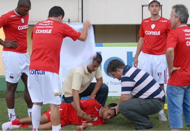 Um incidente assustou a comissão técnica e os dirigentes do Joinville Esporte Clube (JEC), durante o treino da tarde desta quinta-feira, na Arena. Após uma disputa de bola com o volante Flávio Boaventura, o lateral-direito Jamesson, 23 anos, levou a pior, foi empurrado para fora do campo e acabou batendo a cabeça nas placas de publicidade.