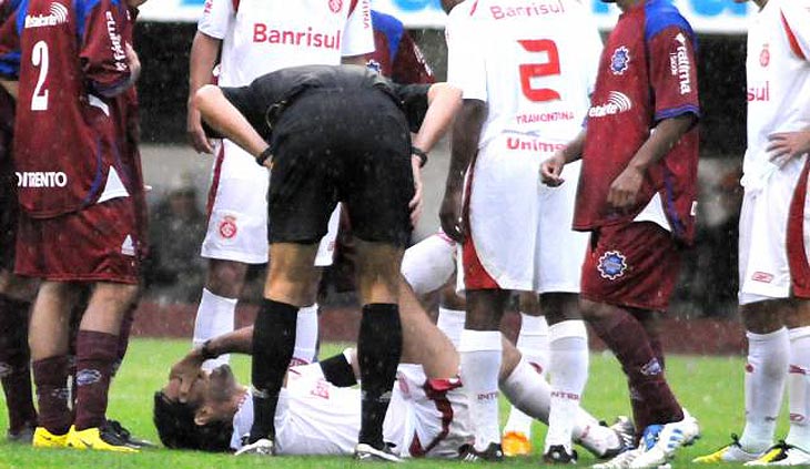 A vitória de 1 a 0 sobre o Caxias teve uma notícia ruim para o Inter. O capitão Fernandão sofreu uma pancada na panturrilha direita e foi substituído por Adriano no início do segundo tempo. Ao final do jogo, o atacante deixou o gramado amparado pelos médicos do Inter e pode ser dúvida para o duelo contra o Paraná, na próxima quarta-feira, pela Copa do Brasil.