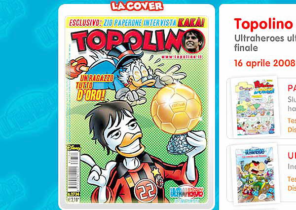 O craque brasileiro Kaká estará presente nas páginas da edição desta quarta da revista semanal do Mickey Mouse na Itália. Na edição, ele será "entrevistado" pelo Tio Patinhas, personagem criado por Walt Disney, e mandará uma mensagem aos leitores:
