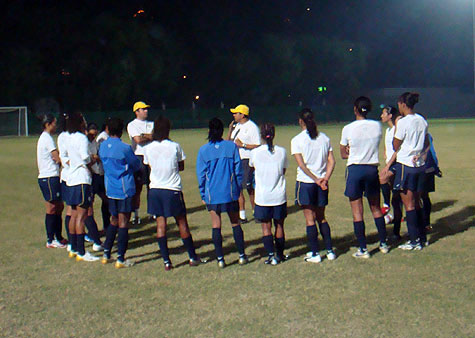 A seleção brasileira feminina de futebol, que está concentrada no Sunworld Hotel, em Pequim, realizou nesta quinta-feira o último coletivo para a partida contra Gana, neste sábado, às 19h45min (8h45min de Brasília) no Worker's Stadium, na capital chinesa. O confronto vale vaga nos Jogos Olímpicos de Pequim.