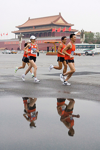 Cerca de mil pessoas de 200 equipes vão correr a maratona, que começará no Parque Olímpico e terminará no Estádio Nacional, também conhecido como Ninho do Pássaro. O percurso será de 31,5 quilômetros.