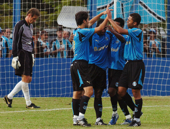 Mas apesar da fragilidade do time adversário, formado por trabalhadores da região que sequer treinam durante a semana, o Grêmio demorou para abrir o placar. O primeiro gol só foi sair aos 34 minutos, quando o adversário já dava sinais claros de cansaço. Dentro da área, André Luis encobriu o goleiro com um toque sutil