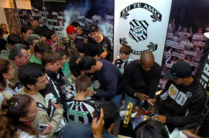 O ídolo da torcida, Fernandes; o catarinense eleito o melhor lateral-esquerdo do Estadual, César Prates; o capitão craque da bola Cleiton Xavier; e o muralha Wílson participaram de uma noite de autógrafos nesta quinta-feira, na Figueira Store, loja situada ao lado do Orlando Scarpelli e receberam todo o carinho da torcida. Ao lado dos troféus conquistados no último domingo, com o 15º título Catarinense, os jogadores foram atenciosos com a legião de fãs que se amontoava em torno deles.