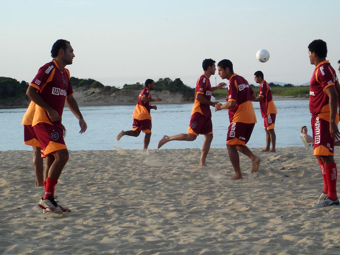 Mesmo em Santa Catarina, a torcida do Brasil de Pelotas não deixa seu time sozinho. O novo elenco rubro-negro, que vai disputar a Série C do Brasileirão, realiza pré-temporada no balneário Barra do Sul - a 50 quilômetros de Joinville.