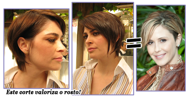 Apesar de ser um cabelo curtinho, é superversátil dependendo da forma como for arrumado. Espécie de "moicano falso", o segredo está na parte lateral do cabelo que é moldada com pomada puxada para trás, de maneira que a franja comprida desça leve pelas laterais. Edison Soares comenta que o segredo é técnica de textura para deixar o cabelo desenhando bem o contorno da face, valorizando o rosto da mulher.