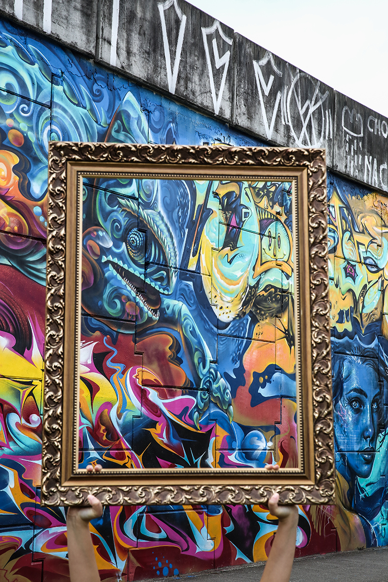 Bairros como o Centro Histórico, a Lagoa da Conceição, o Córrego Grande, pontos do Sul da Ilha e região continental, para citar alguns, viraram uma galeria a céu aberto e gratuita — não tem como fugir desse clichê. As cabeceiras das pontes são as principais delas. Quem caminha pela passagem para pedestres da Ponte Pedro Ivo se depara com um palimpsesto urbano com a memória da cidade escrita com tinta spray. Menos verticalizada que cidades como São Paulo, onde imperam arranha-céus, as pinturas por aqui estão na altura do olhar. Com o detalhe de que muitas obras são elogios à natureza, desenhos carregados de carga poética e de mensagens positivas.