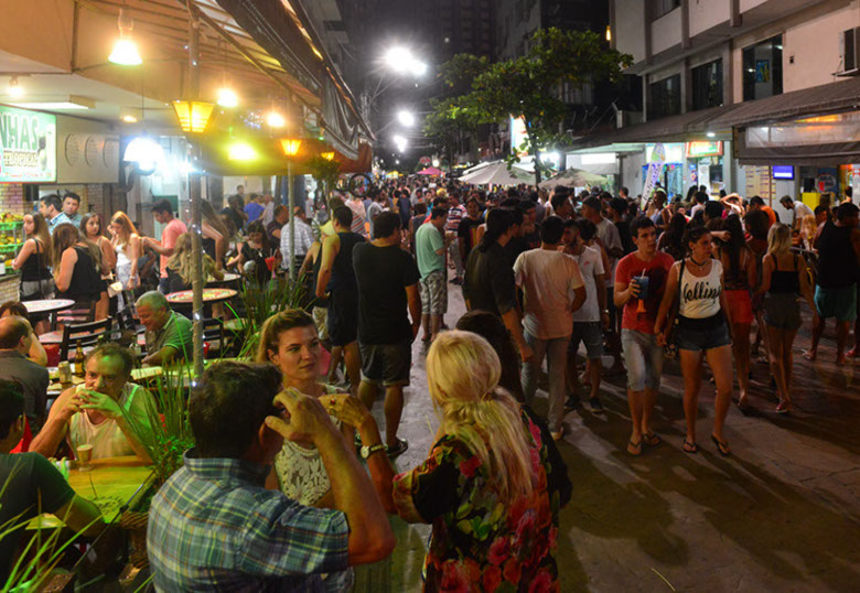 O calçadão da Avenida Central entra em ebulição depois das 22h